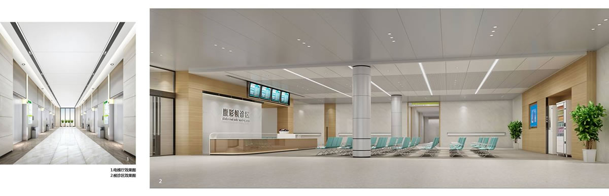 在醫(yī)院空間設(shè)計(jì)上強(qiáng)調(diào)功能性,結(jié)構(gòu)和形式的完整,更追求材料、技術(shù)、空間的表現(xiàn)深度與精確。多處使用簡單的流線來形成組織空間。主色調(diào)由白色、淺黃色結(jié)合營造出簡潔大氣、柔和淡雅的醫(yī)療空間,給予人一種溫暖優(yōu)雅的感受,能撫慰患者的心情,使他們積極配合診療。