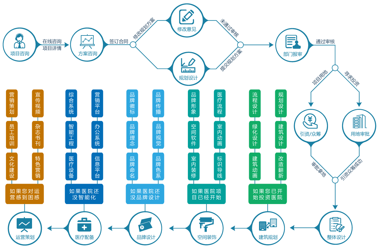 市場(chǎng)運(yùn)營(yíng):后期的運(yùn)營(yíng)發(fā)展,通過對(duì)醫(yī)院進(jìn)行整體的市場(chǎng)策劃和管理培訓(xùn),實(shí)現(xiàn)醫(yī)療機(jī)構(gòu)迅速完成品牌效應(yīng)和團(tuán)隊(duì)建設(shè),保證醫(yī)院對(duì)外業(yè)務(wù)的有序執(zhí)行和健康發(fā)展。