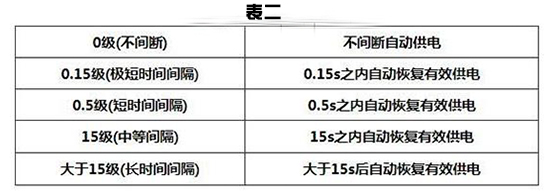 1、1類和2類醫(yī)療場所內(nèi),任一導(dǎo)體上的電壓下降值高于標(biāo)準(zhǔn)電壓10%時(shí),安全電源應(yīng)自動(dòng)啟動(dòng)。安全電源的分類應(yīng)符合表二的規(guī)定: