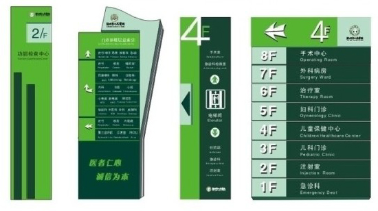 就診是否方便快捷、人流物流是否合理,都決定著醫(yī)院環(huán)境的質(zhì)量,影響著群眾對(duì)醫(yī)院的整體印象,而設(shè)置一套科學(xué)明晰的醫(yī)院標(biāo)識(shí)導(dǎo)向系統(tǒng),是醫(yī)院形象系統(tǒng)與內(nèi)部使用功能的組成部分,是醫(yī)院環(huán)境建設(shè)的重要內(nèi)容。