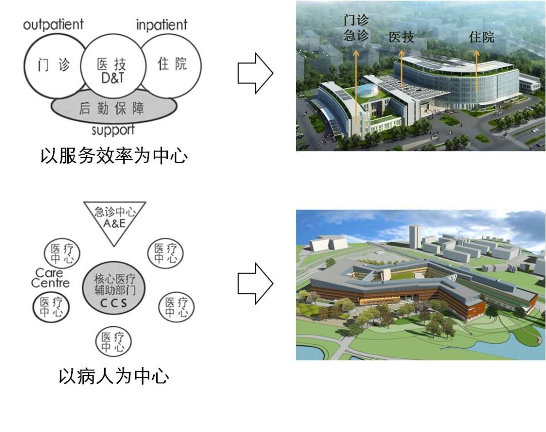 醫(yī)院的無序流動(dòng),是和我國醫(yī)院建筑及空間布局以及院內(nèi)管理效率主導(dǎo)的,以前只有公立醫(yī)院,也不注重建筑的外觀及動(dòng)向管理設(shè)計(jì),只是保證醫(yī)院的各功能區(qū)域有就可以,作為一個(gè)龐大的公共建筑體,建成后也不可能再有大的改動(dòng)。醫(yī)院主要分為門診、醫(yī)技、住院三部分,其中醫(yī)技布置在門診和住院中間,這種布局起初是便于醫(yī)生共享醫(yī)院的高精尖設(shè)備,降低成本,能為更多患者提供診療服務(wù)。在這種布局中,醫(yī)生不動(dòng),患者流動(dòng),也就造成患者需要在門診和檢查室多次往返。