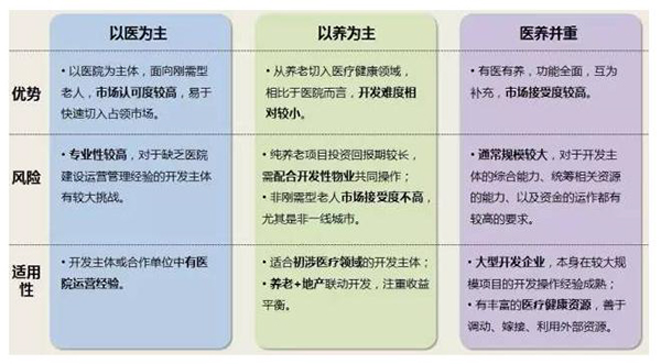 4)三種醫(yī)養(yǎng)模式的比較
