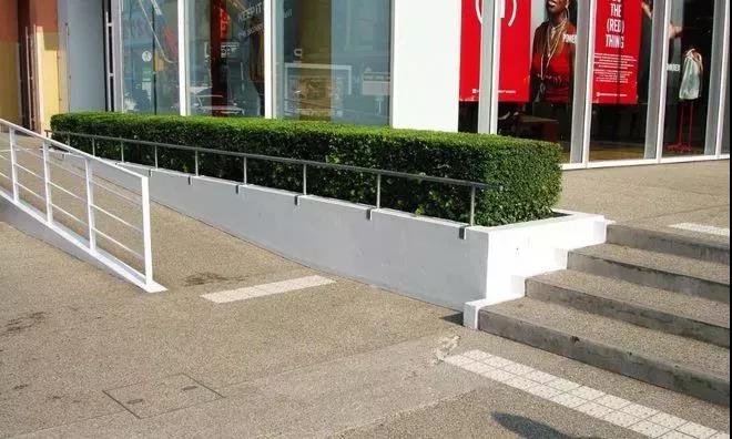 3、停車車位的輪椅通道與人行通道的地面有高度差時(shí),應(yīng)設(shè)符合輪椅通行的坡道。