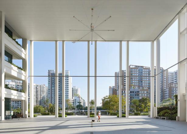 俯瞰公共花園的平臺上是公共食堂、餐廳、教育中心以及綜合醫(yī)療服務室以及戶外區(qū)域。這些空間與梯臺花園直接相連,讓就餐活動分散到這些區(qū)域中,同樣地,綜合醫(yī)院等候區(qū)也可欣賞梯臺花園及水渠景觀。