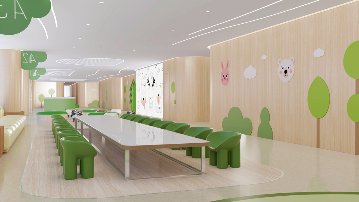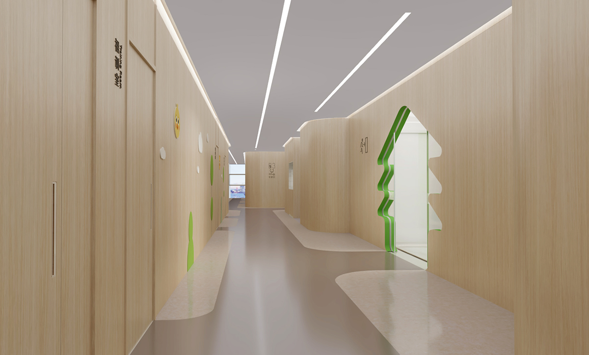 該兒童醫(yī)院在設(shè)計時,拐角沒有有太多的棱角,防止兒童磕傷自己,同時采用綠色環(huán)保的材料來粉刷墻面,搭配卡通形象,不僅能激發(fā)兒童探索的興趣,還能轉(zhuǎn)移他們的注意力,緩解不良情緒,此外,醫(yī)院還設(shè)置了兒童區(qū)域,娛樂設(shè)施等等,為兒童及其家屬提供交流、休息的場所。